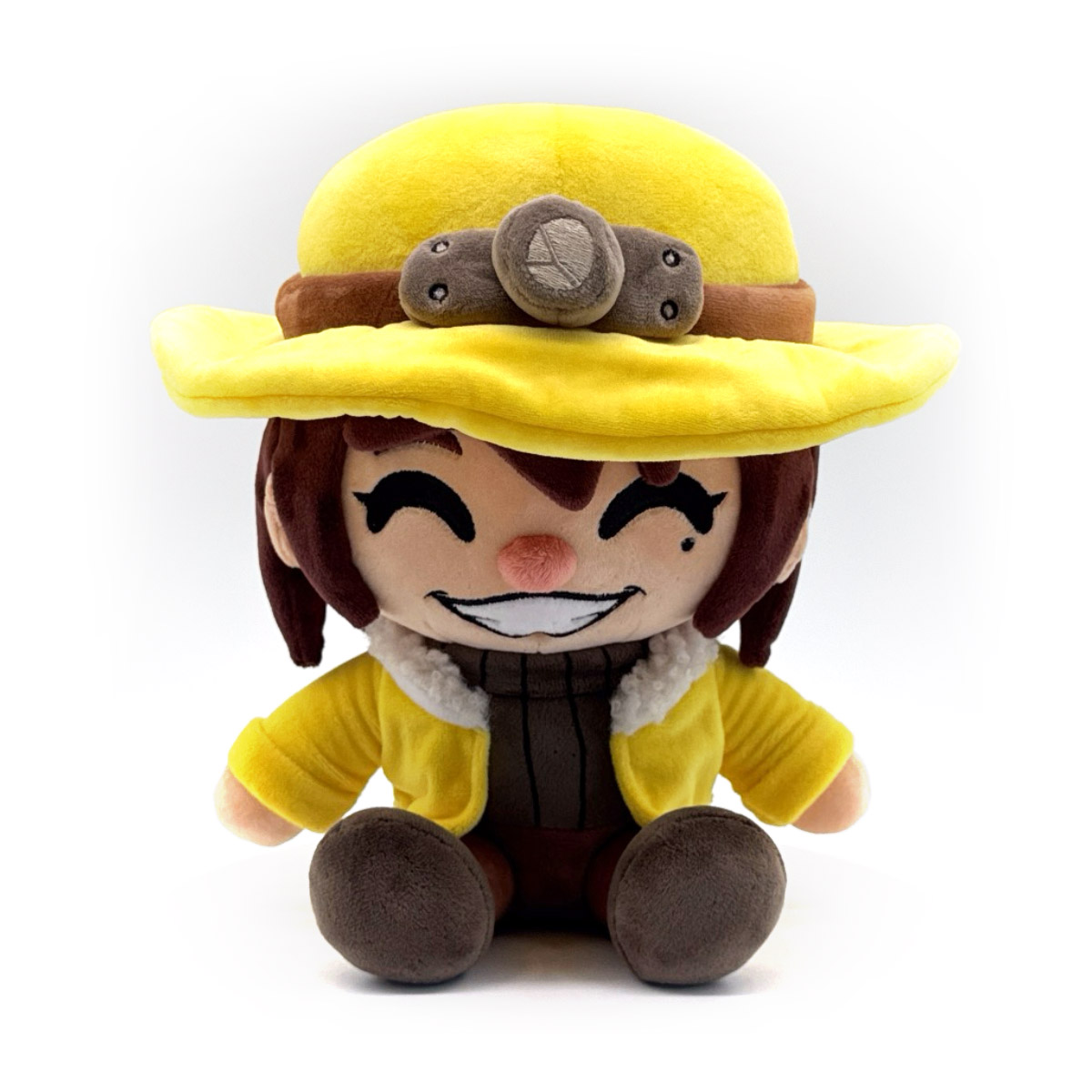 Oh no, there’s no treasure here… What’s Ana doing then? Uhh, don’t worry about it! Just focus on her Youtooz debut! Sitting at 9 inches tall with a huge grin beaming out from under a round pink nose and delighted eyes, long brown hair frames her face as a yellow helmet with a cracked lamp on the front rests atop her head. Wearing a yellow jacket with a fur-lined collar over her ribbed sweater and suspenders, brown pants that lead down to black boots that will surely help keep her safe from spiked floors! This plush is packed to the seams with 100% PP cotton and is made of the softest minky material with accents of felt and sherpa, absolutely perfect for cuddling or treasure hunting with!