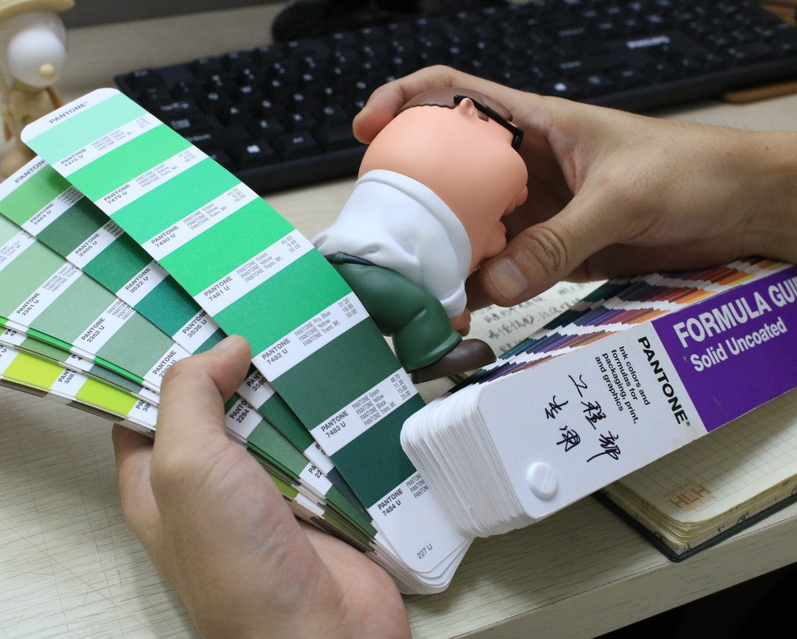 The Youtooz concept artist creates a 4-point turn around of the concept to see how it will look in 3D and decides on the pantone colors that will be painted on the model. Over 3,000 pantone colors exist in varying shades and styles making the selection process very important to capturing the character in physical painted form.